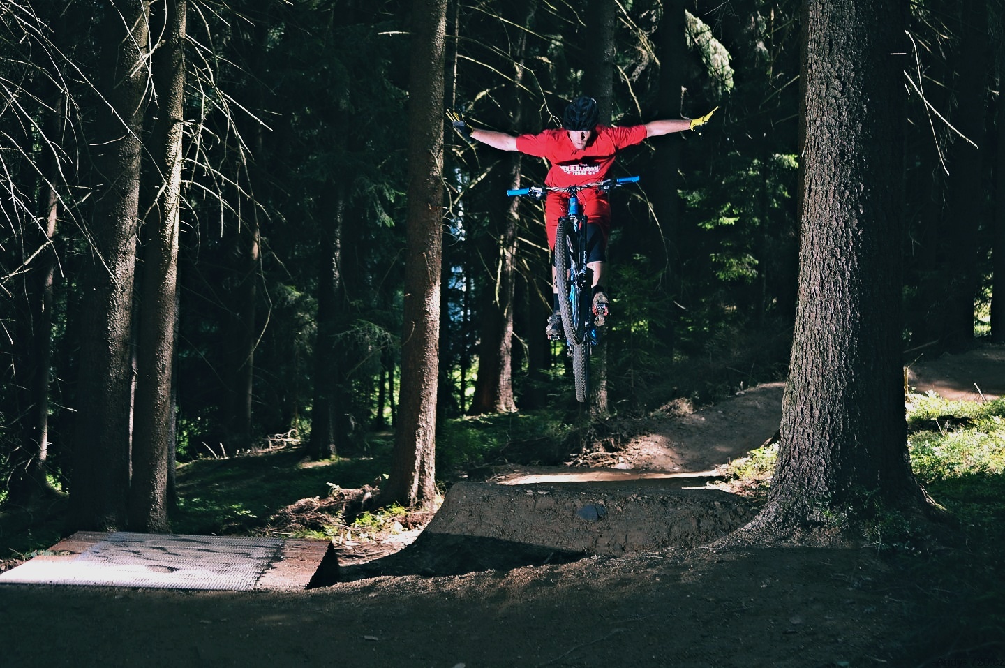 Vrchní část je pak natažená lesem a to v parádně navazujících pasážích. Klopka, boule, lavice, lavice, zatáčka, klopka a tak dále a tak dále. Všechno je to čitelný pěkně dopředu a i na první jízdu na oči, se dá většina naskákat. Odpaly čistý, dopady široký a hezky navazující. Ke konci prvního lesa je pak jeden větší poskok, přes strouhu, kterej se ale dá objet po lávce, nebo ho tam prostě odpálit.