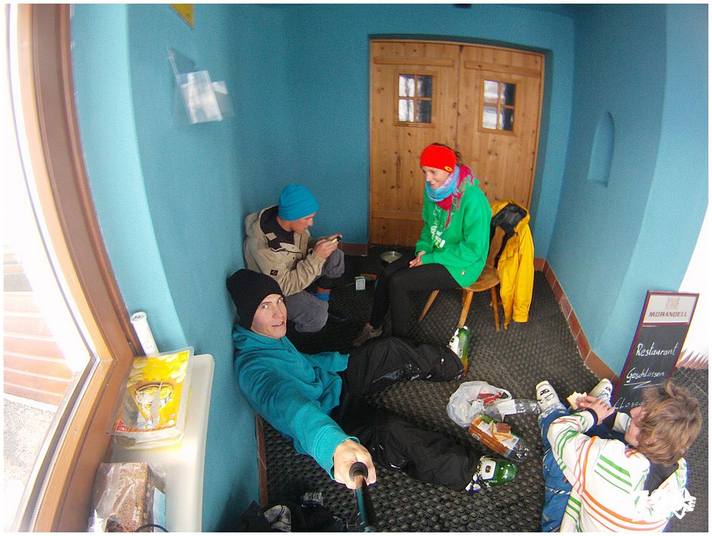Ranní probuzení, pohled ven a zjištění kolik toho utálo jen za pár hodin nevěstí nic dobrého. No nic nepřijeli jsme se válet na parkovišti a hurá na kopec. Pro mě to jsou letos první pořádné oblouky, protože Dachstein se nepočítá, tam se jede maximálně rovně na skok. Samozřejmě na nohách prašanovky a tak s Hellbentama malinko bojuji. No nic přejedeme na druhý kopec nad Bad Hofgastein, zde v podstatě celý den blbneme pod jednou čtyřsedačkou, kde se dá najít nějaká ta lajna v hlubokém sněhu. Nahoře konečně začíná pořádně sněžit a sněží celý den, já začínám být promáčený, protože 5 let starý kalhoty už moc nefungujou. Cestou dolů se sněžení mění na vydatný déšť. Jsem totálně durch, stavíme ve stanici lanovky, kde dáváme fotbálek v zábavným koutku dokud nás nevyhodí, že zavírají. Sjíždíme lanovkou dolů a usycháme pro změnu ve spodní stanici opět do vyhoštění. Pořád prší a my jdeme do auta a vařit večeři, tentokrát obsazujeme autobusovou zastávku a děláme z ní kuchyň. Po jídle přijíždí kamarádi z Kladna, taky spát do auta. Bereme piváky a nějaké dobroty a jdeme obsadit již několikrát ozkoušené vlakové nádraží, kde je čekárna s topením. Ideální na uschnutí věcí, které jsme ještě nesundali. Jistě, že máme i lyžáky. Po dvou hodinách, když přestalo pršet jdeme malinko projít Bad Gastein a v půl 9 konečně z věcí a rovnou do spacáku. Budíka dáváme na brzo v očekávání otevření Sportgasteinu.
