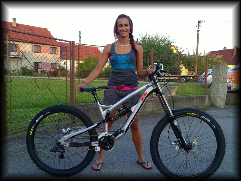 To co přichází vzápětí ale není moje zkáza, ale naprosto úžasné svezení, totální extáze, jasně, že jsem nejprve trošku neohrabaná, jak malá žirafa když se učí chodit, kolo je přece jen delší, těžší než Akita, je to jiné, bojím se dvoukorunky v zatáčkách, ale zbytečně. Dovoluji si čím dál víc, zjišťuji že Ninja je na to jak pruží neskutečně hravá, do skoků péruje sama a v letu je tak neuvěřitelně stabilní, jako že trpím na předky a křiváky, teď nepadl ani jednou, nakonec je to celkem rodeo. Dovádím, zkouším co ten můj koník vydrží, jdu do všeho i když vím, že ta rychlost tam třeba fakt není, doletím, nedoletím, neřeším! Ninja povoluje strašný komba, být to na Akitě, rajtuju už tak max. na lůžku s hadičkami v puse. Nakonec zandávám i dva spodní dablíky a jsem na nejvýš spokojená, jízdu před závodem si to zkouším aspoň jednou bez řetězu a ehm šlapu jak o život.