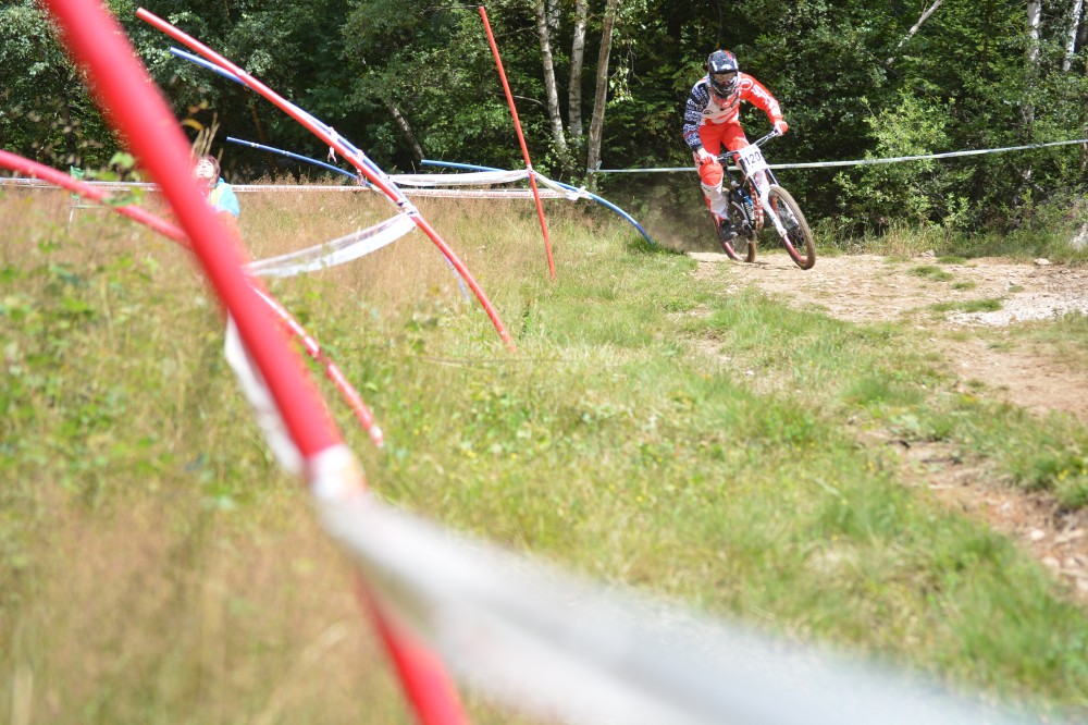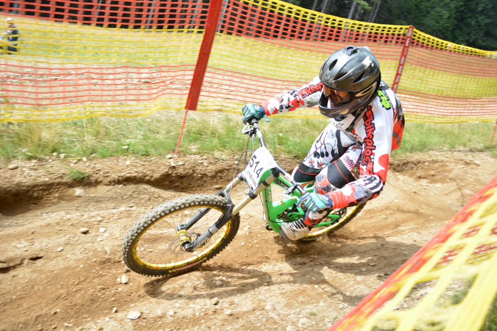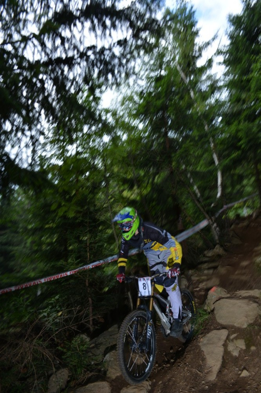 Dopoledne je vidět, že si ještě pár dobrodinců najíždí poslední stopy, i když zrovna na týhle trati mě přijde, že v průběhu závodů, se to moc nemění a nemusíš tak hledat nový stopy každou jízdu, jak freerider na čerstvě zasněžený louce. Prostě vypadá to pořád nějak stejně. Kolem 11hod pak startuje první jízda a začíná se žákama, pak jedou starý páky, pak mladší páky, pak to dávaj expertí, juniři – do půlky (jeden mladas se nepěkně vyndavá na dvou dropech – snad je OK, protože ho vezla dolu horská) pak elita a nakonec dojíždí zbytek juncků. Odjetý je to celkem rychle a bez větších průtahů se jde do finále.