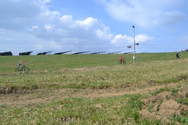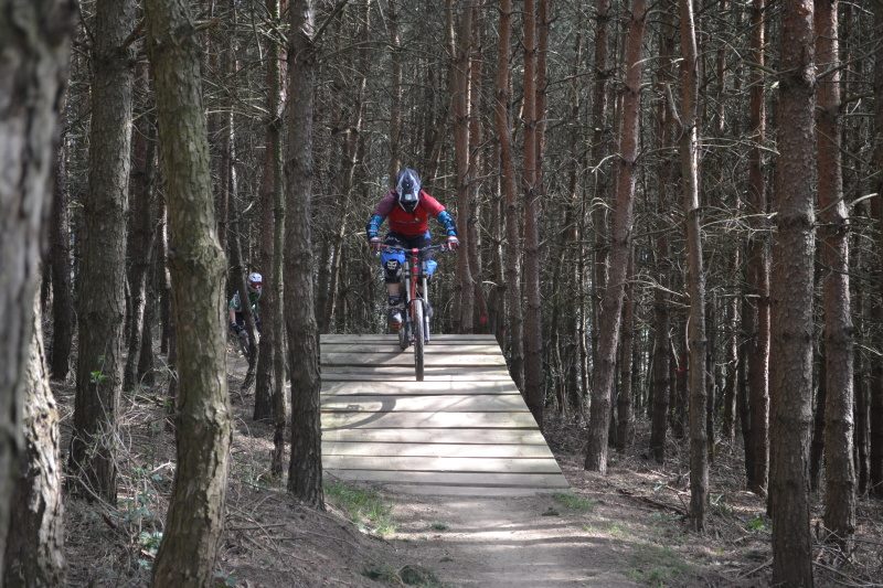 Cestou na kopec zkoumám starou tratičku, kterou už znám. V podstatě se nezměnila. Krásný velký vyžehlený klopky, dopady jak přistávací plocha pro letadla, čemuž se dají přizpůsobit i polety, samej dvojáček a vůbec, pořád je to tu tak krásně hravé a zábavné, jako minulý rok. Na to, že se nejedná o velký kopec je neskutečné, co všechno tu je a jak se tu člověk vyblbne v kombinaci s pomou, co nahoru doslova letí. Navíc jak tak koukám, jooo, jako fakt, normálně se práší drazí přátelé, je 22. březen a trať je tvrdá jak kámen a prašná jak v létě – to bude panečku super den. Co mě ale dál zajímá je nová trať, která se vlní převážně lesíkem, ale sem tam na mě na laně vykoukne něco jako dropík ze šutru, nebo dva delší dvojáky. Nicméně ano, nejsou úplně krátký, ale ani zlý, což znamená, že jezdcům docela tolerují vetší i menší hrany. Tak si říkám rozjezdím se a pak někdy bych se to vydala prozkoumat.