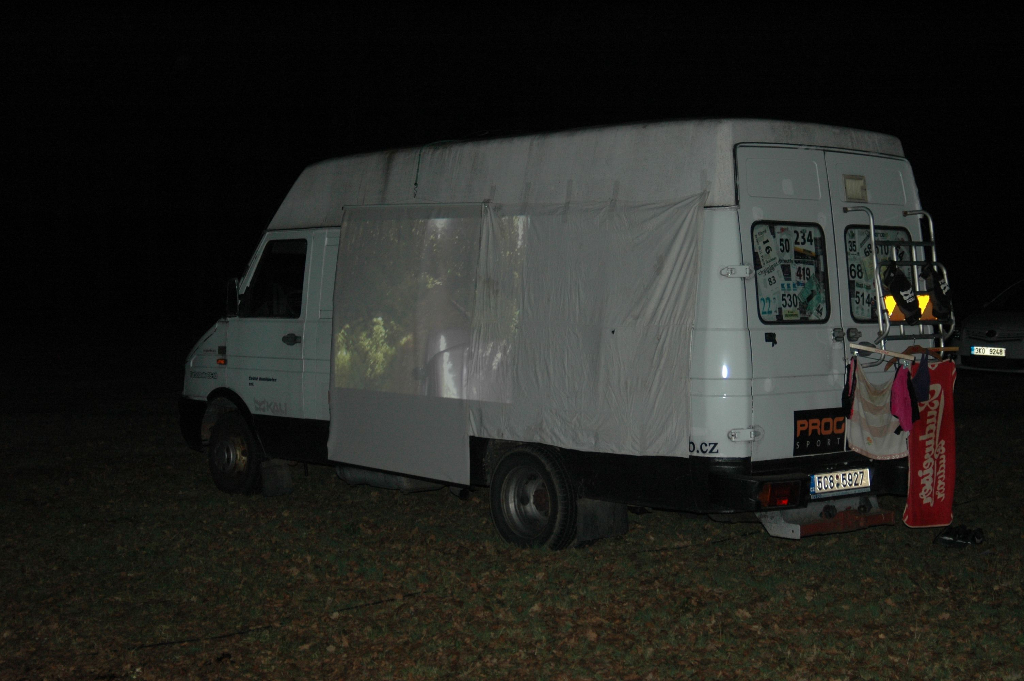 Vlk dovalil s obrovskou centrálou, Cruzo přivezl odvučení, já koupil benzín a vzal kompa, a Máára pustil videjka z Kanady. Bylo fakt užasný, sedět v noci v lese, koukat na plátno, s partou těch nej kemperů z branže freedivingu, freeskiingu a freeridingu. On totiž například dorazil i Jandy, přímo z lyží v Rakousku…