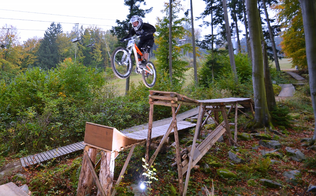 A po včerejším reportu pár fotek z Vašeho řetězem nespoutanýho ježdění, kde nepřítel byl čas a přítelem gravitace a později odpoledne naopak gravitaci snažíc se ošálit jste vzduch vířili vašima whipama víc, než by zkušenej kovboj zvládnul vlastním bičem nad stádem divokejch mustangů..