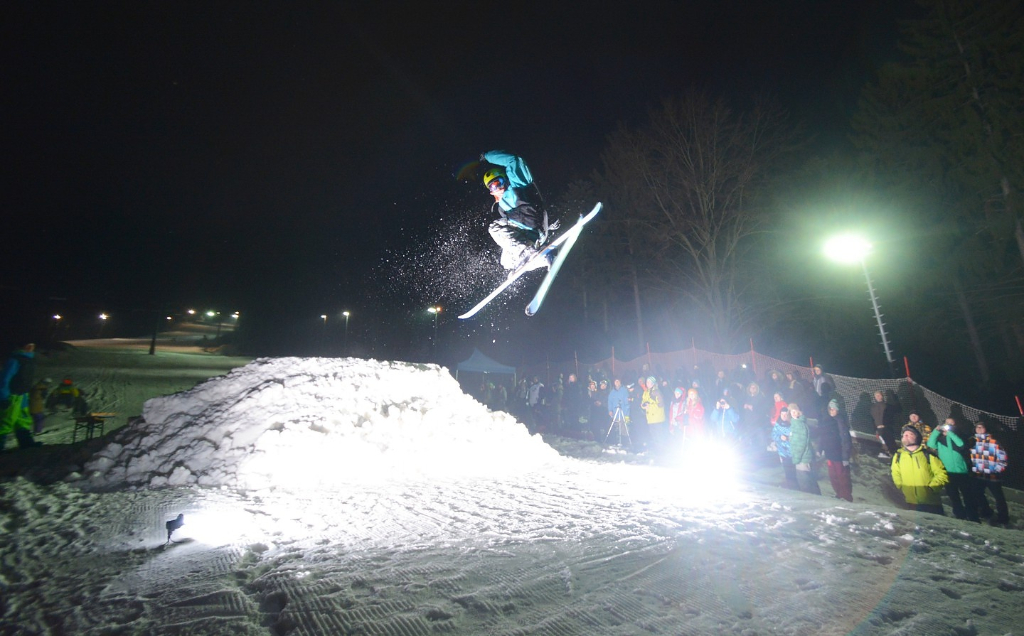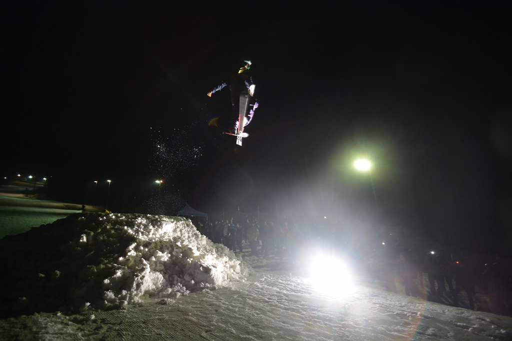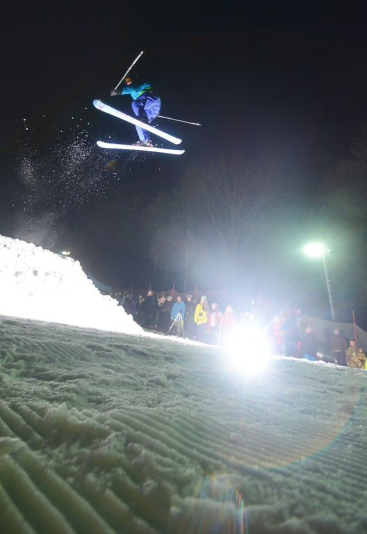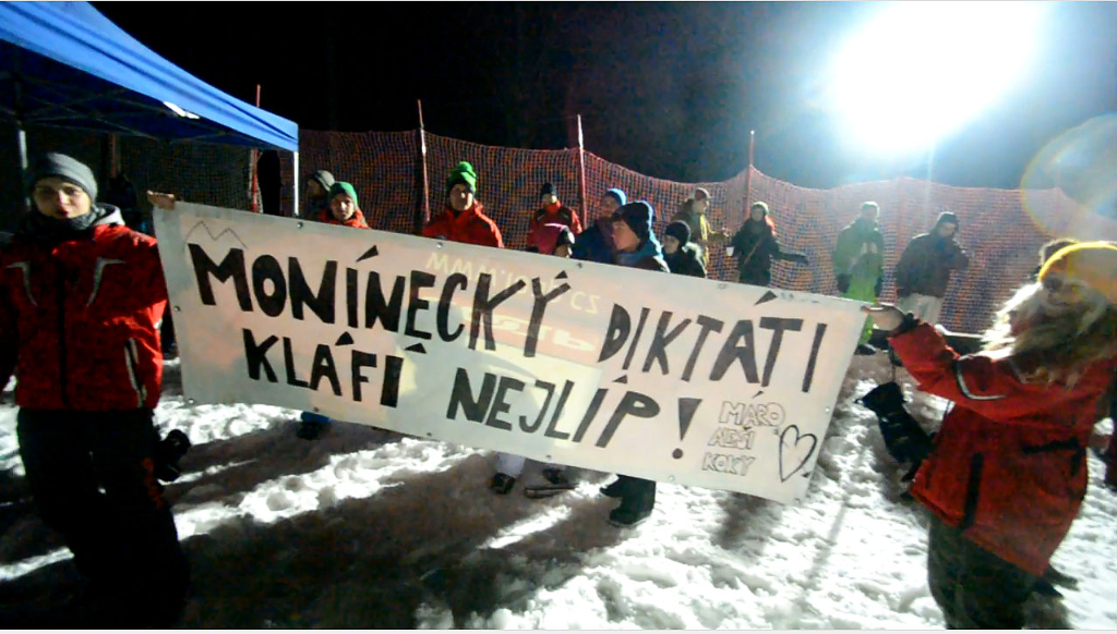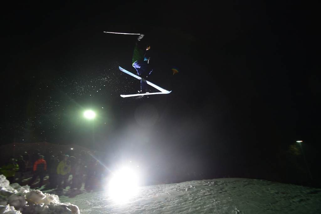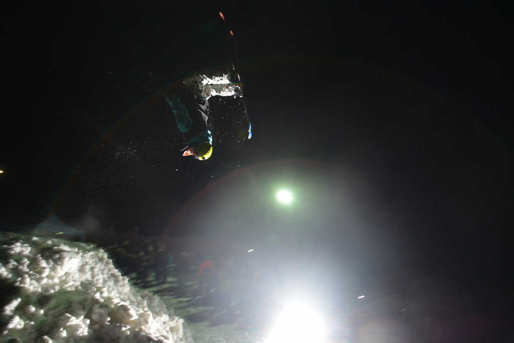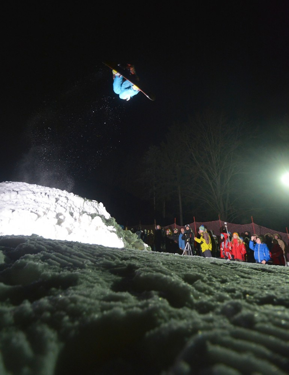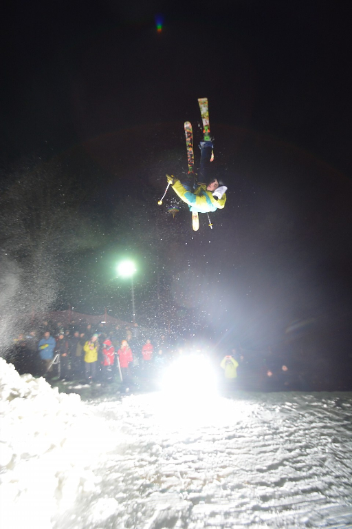 Letošní zima si sice nastavila spodní litní teploty do plusovejch hodnot, to ale neznamená, že na Monínci nebude sníh a že ho dokonce nebude tolik, aby zde opět po roce nemohl vyrůst pěknej polet, kde se i přes hlavu dá něco otočit. Zkušenýho sjižděče bílých svahů nemohl pak teda v pátek na sjezdovce nijak překvapit macek, co na přemostění ze sněhu vyrost a lehce bránil přes den i na večrním lyžovnání v rozletu sjezduchtivým návštěvníkům. Ale i přes všechny ty kladný Celsiusy, skok za ten den neskutečně vytuh a tak spíše než on, vypadalo to, že bude naopak zas sjezdovka večer bránit poletuchtivým skokanům při rozjezdu. Přihlášenejch jedenáct kousků do battlu totiž postupně, jak si testovali povrch při večerním lyžovnání, dospívalo k názoru, že na tomhle to nebudeme schopný rozjet ani na polovniční skok. Řešilo se voskování jak o život a v očích všech vyskakovali tak velký otazníky.