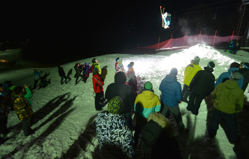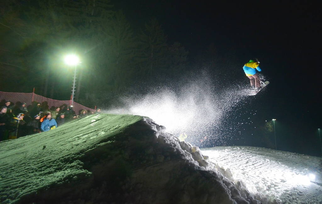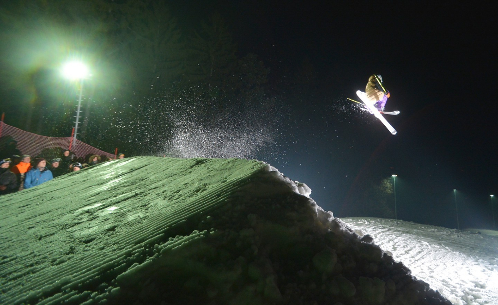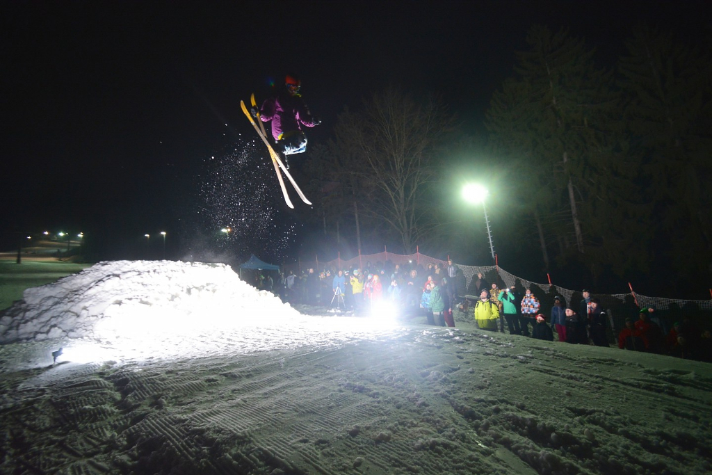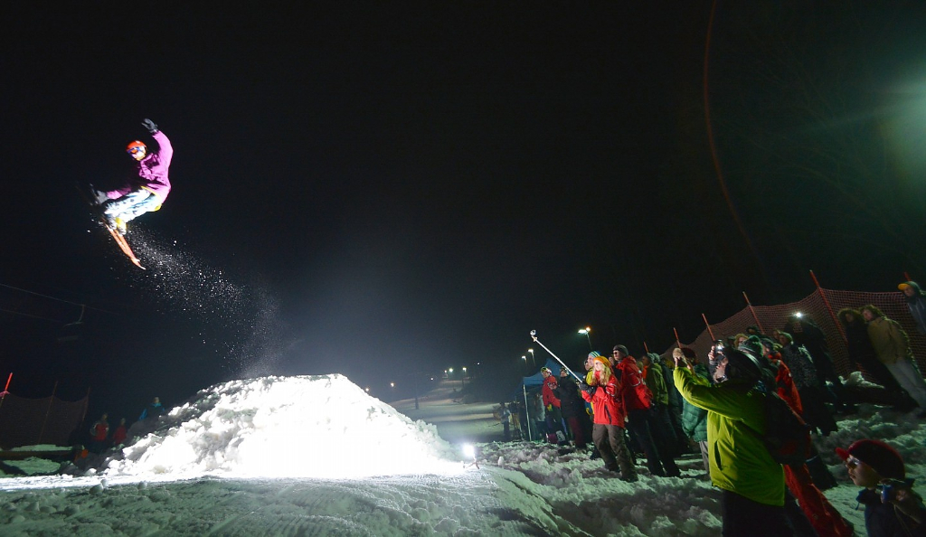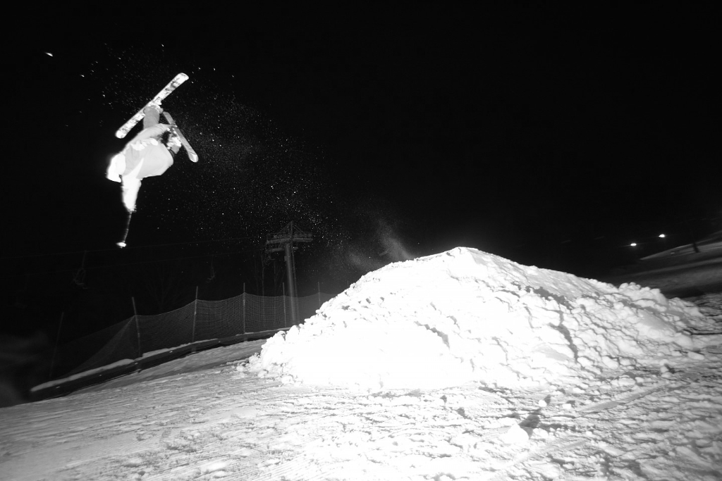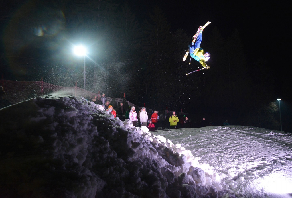 Letošní zima si sice nastavila spodní litní teploty do plusovejch hodnot, to ale neznamená, že na Monínci nebude sníh a že ho dokonce nebude tolik, aby zde opět po roce nemohl vyrůst pěknej polet, kde se i přes hlavu dá něco otočit. Zkušenýho sjižděče bílých svahů nemohl pak teda v pátek na sjezdovce nijak překvapit macek, co na přemostění ze sněhu vyrost a lehce bránil přes den i na večrním lyžovnání v rozletu sjezduchtivým návštěvníkům. Ale i přes všechny ty kladný Celsiusy, skok za ten den neskutečně vytuh a tak spíše než on, vypadalo to, že bude naopak zas sjezdovka večer bránit poletuchtivým skokanům při rozjezdu. Přihlášenejch jedenáct kousků do battlu totiž postupně, jak si testovali povrch při večerním lyžovnání, dospívalo k názoru, že na tomhle to nebudeme schopný rozjet ani na polovniční skok. Řešilo se voskování jak o život a v očích všech vyskakovali tak velký otazníky.