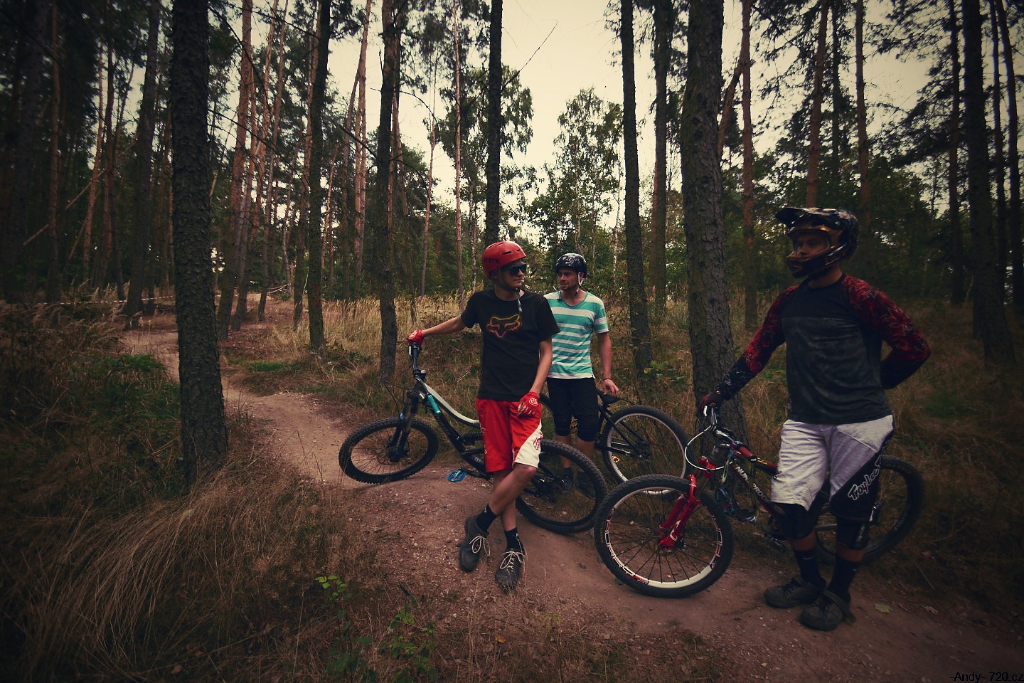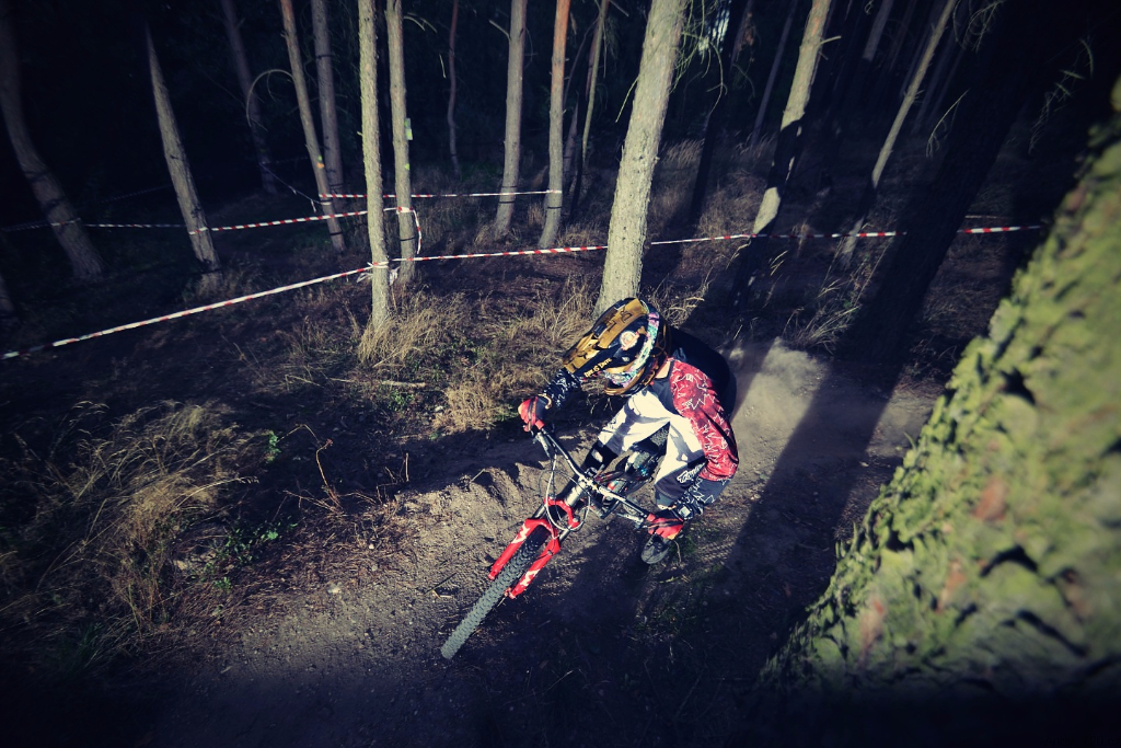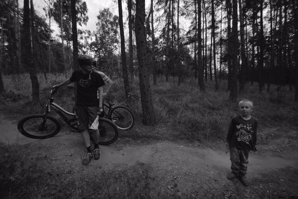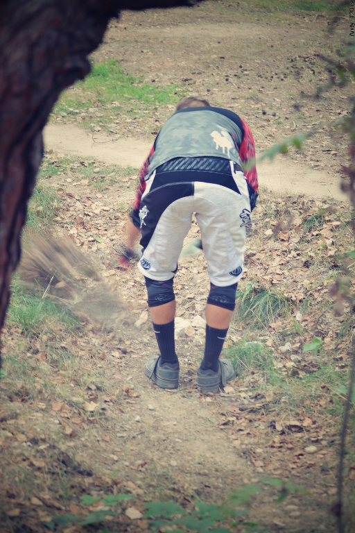 Na místě kde chceme něco dotočit, se ještě místní banda XC chrtů rozhodla zrovna si natáhnout mlíko na závody, co se tam pojedou za dva dny. Prostě každej roh kosočtverce do jedý strany zdi. A tak když už to vypadá, že spadne nejen pár kapek, ale budou kapat i trakaře a nad halvou nám vítr začíná ohejbat stromy v pase, beru aspoň foťák a něco cvakám.