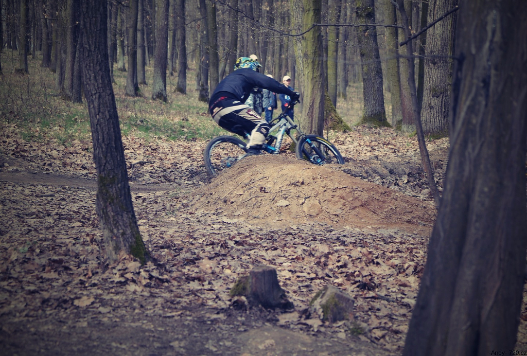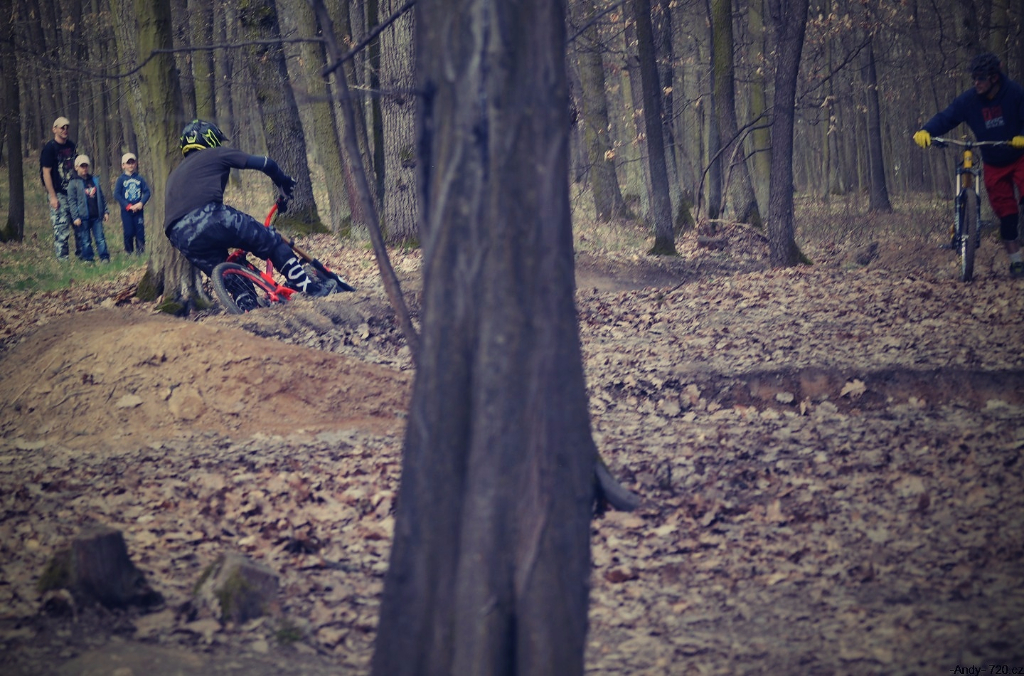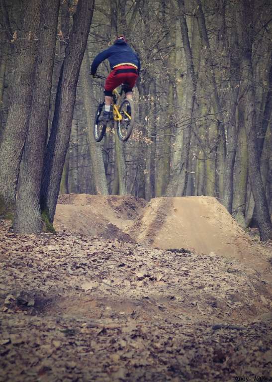 Nutno podtoknout, že klucí tady s tím fak tpohnuly a jak jsem se v průběhu ježdění pak doslýchal, od přijíždějících bikerů, tak v sobotu tu lítalo snad 15lidí – no slušná sebranka na to, že před pár měsíci tu člověk potkal tak maximálně chrta na XC. Nicméně to, co tu vyrostlo prostě nejen dobře vypa dá, ale jak jsem se po chvíli přesvědčil, tak to i dobře navazuje. Skok váže sko, váže klopku, váže tráňo, váže klopku, váže skok.. několik mnoho varinat a možností jak v průběhu přeskočit do jiný lajny a dát si tak parádní sérii klopek a poletů a po každý jízdě mít lehce nepřítomnej výraz.