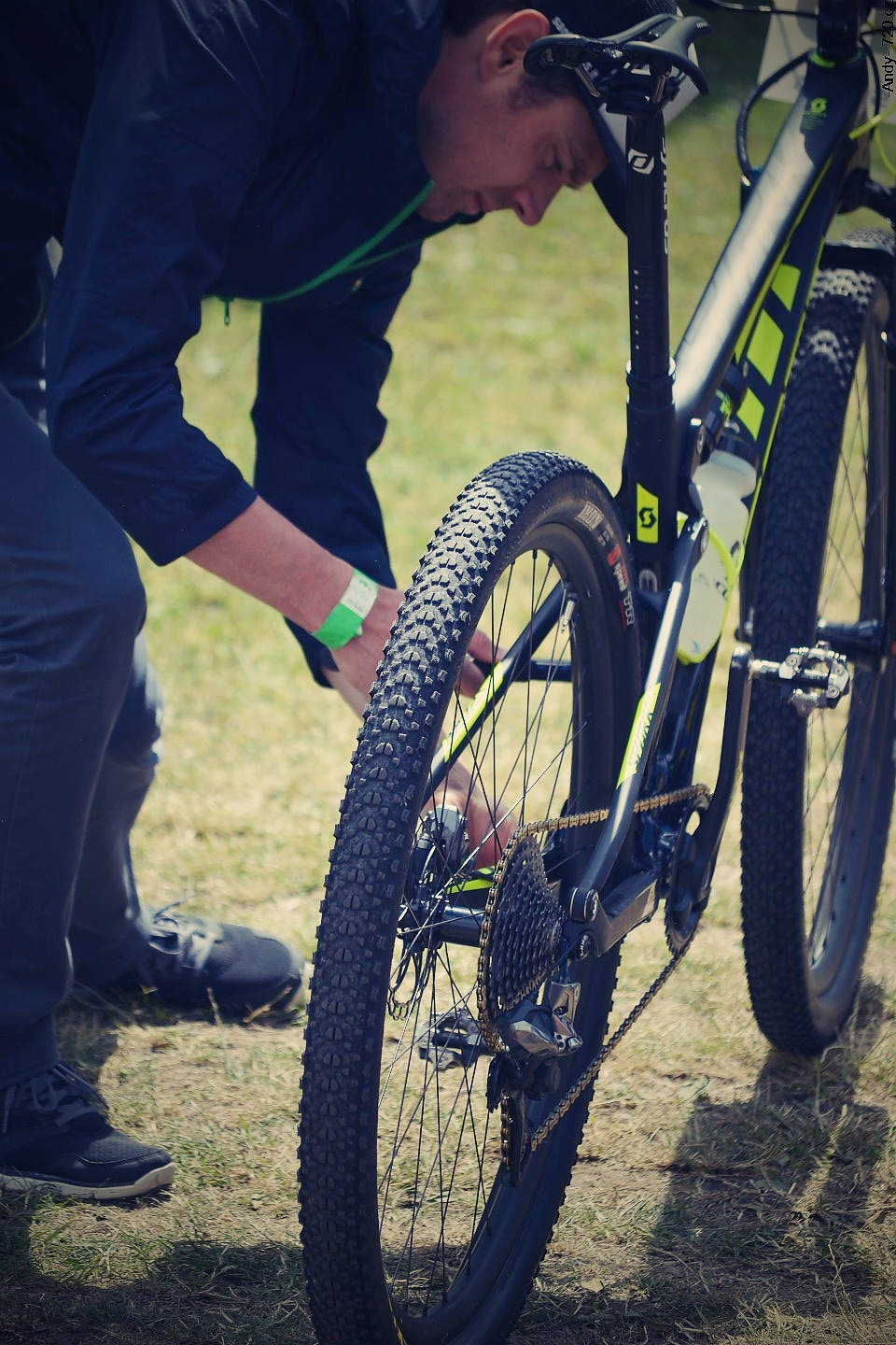 Les se opět začíná plnit a kolem startu/cíle to začíná houstnout. Profící se svolávaj do depa na kontrolu kol – běhá tam i chlapík a holka s tabletem a mimo jiné všem kontrolujou jestli někdo nemá v rámu schovanej motor (po excesu na cyklokrosu se tahle elektrodopingová legrece začla brát docela vážně).