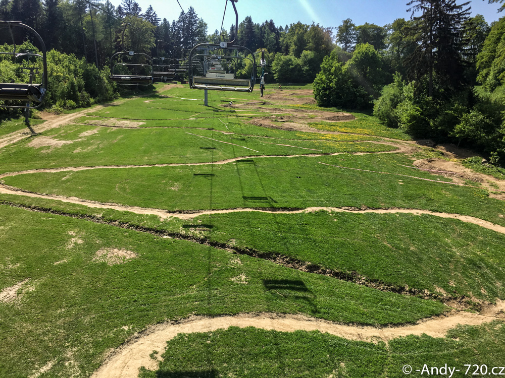 První jízda nahoru a koukám, že ani na trati není moc lidí, ale aspoň nám to moc nerozjezdí – haha.. Jenže co nerozseká člověk, tam pomůže příroda. Sucho je letos fakt mocný a tak když vyjíždím nahoru a poprvé letos pouštím nahoře brzy, musím hned v první klopce přiznat, že jsem rád, že těch lidí letos přijelo na otvíračku míň. Klopky už kolem jedenáctý dostávaj strašnej záhul a sypou se jak hrady z písku uprostřed Sahary. Můžem šejpovat do alelůja, ale bez vody to prostě držet nebude. Na druhou stranu, je to zas zajímavá jízdní zkušenost.