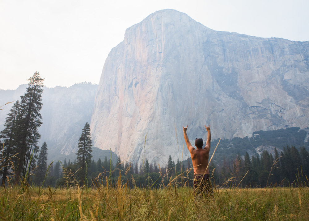 Dalsi dva dny volna beru kamose Masona a jedem do Yosemite. Na radu kamose prijizdime az po 9 vecer. V budce nikdo, takze free vstup. Kempujem na parkaci u kempu 4, opet zadax. Rano jdem omrknout El Capitana. Potkavame particku zdejsich base jumpers a lezcu. Vypravi o nekonecnem boji z rangers a pod. Natoz ze base jump je tu ilegal, nekteri maji na konte pres 100 seskoku. Vecer nas zvou mezi sebe. Party na louce primo pod El Capitan ve spolecnosti legend, ktere dali prvni base jump uz v roce 1986. Krom El Capitan mame vyhled I na hory ktere se stali osudnymi pro legendy Dan Osman nebo Dean Potter. Vedle nas reka, ktera byla osudna Frankiemu, ktery se utopil, kdyz se snazil utect rangers po base jumpu z Capitana. Mnoho historek bylo vypraveno. Do toho se hraje na ruzne nastroje. Vzhledem k tomu ze hned vedle nas je reka s cistou vodou, a par set metru tu je pro turisty supermarket, zdejsi lokalove nemusi opustit toto misto I po nekolik mesicu. Avsak velky pozar co zasahl park nas nuti evakuovat se druhy den. Ja evakuaci se strany zachranovaneho este nezazil. Takze sem si to dost uzival. Panikaril sem co to slo, takze nas pri vyjezdu radsi ani nekontrolovali, jestli sme zaplatili a jen mi zasalutovali.
