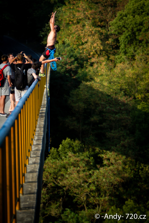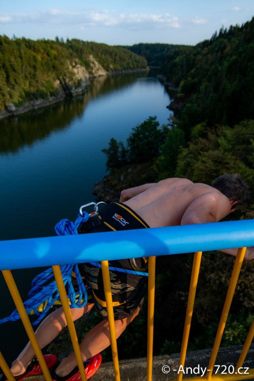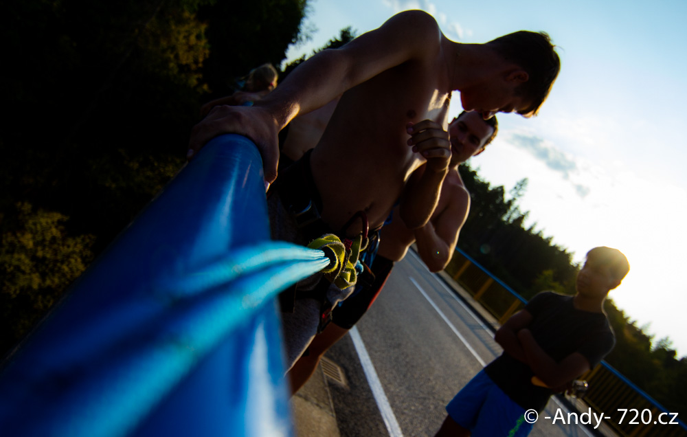 Prostě most, lano, zábradlí a pustá prázdnota co naplní vším se během pár vteřin.