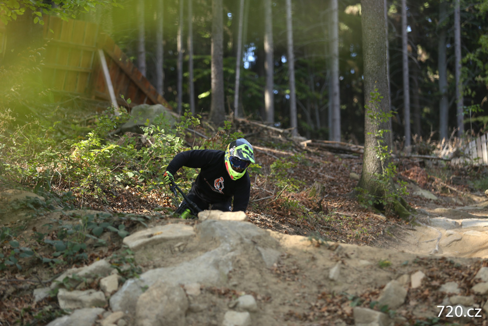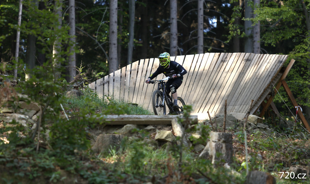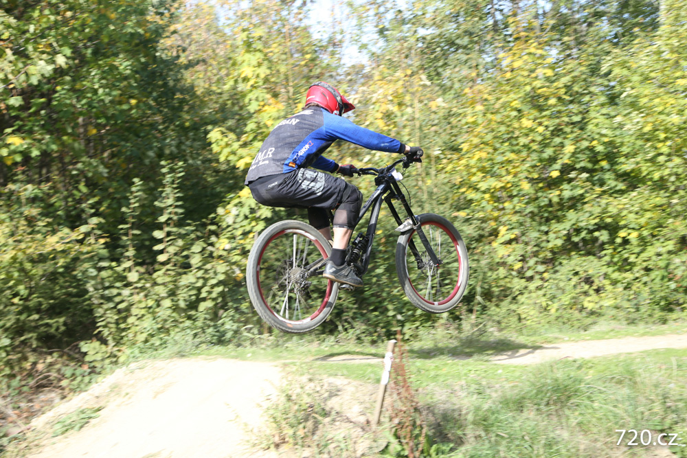 Nakonec máme na startovce pěknejch 62 startujících. Teda byli i roky kdy to byl dvojnásobek, ale nás těší že i přes křížení třeba s Endurem na Ještědu, sem pořád pár lidí přijelo. Každopádně držíme harmonogram a v 11hod už na startu nervźně přešlapuje první várka jezdců. Při dvou kolech s 62 startujícmi to s minutovejma rozestupama znamená, že se dole v cíli na pěkný dvě hoďky nehnu ze židle. Bohužel jedem tuhle akci s Vlčákem jen ve dvou a tak trochu v punku.