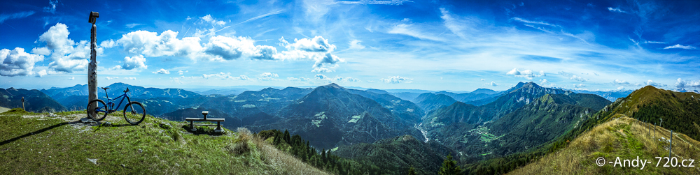 (Teď, když to píšu stačí ale zavřít oči a jsem tam zpět.) Je to plýtvání časem v dnešní honbě za vším, nebo že by daň při vytržení z digitálního světa, že ten čas letí tak rychle? Těžko říct. Každopádně ale podléhám a dělám pár fotek a i video, snad abych nasral pár lidí v práci – vždyť je přeci úterý, čas řešit pondělní průsery. Nakonec se ale sbírám, nandavám chrániče, sedlovka letí dolu a já naskakuju do DéHáčka. Rád bych napsal, že dolu letím jak čmelák, ale protože jsem tu sám, jedu spíš na pohodu. Trail je to ale pěknej a kdyby fungovala lanovka, nebo jsem měl ten e-bike, dalo by se tu celkem zablbnout. (Později zjišťuju, že se tu dokonce jezdí nějaký Slovinský DH závody, ale teď už jsme mimo sezonu). U auta jsem za pár minut, ale legrace to byla velká. Dávám další tyčinku a banán a už v poklidu se zabaleným autem, vyrážíme směr jih.