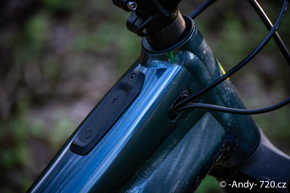 Motorově/softwarově nevychytaná věc jsou pak ale hodně technický pasáže do kopce, kdy si člověk třeba nadhodí předek, aby z manuálu udělal malej bunny-hop a v tu chvíli, když se zadní kolo dostane pod tahem řetězu do vzduchu a brutálně se roztočí, tak člověk zas dopadne a motor dostane strašnej záhul. (Teď jen nevim, jestli jste mě rozuměli? Prostě banán v tahu a dopad na zadní kolo). Chápu, že už to není běžnej typ ježdění, ale u tohodle typu kola by neškodil malej zásah do softwaru, který by tenhle neduh třeba dokázal vyřešit. Šéf e-bikový divize Spešlu sice tvrdí, že konečně přišli na symbiózu mezi motorem, baterkou a trailem, ale nevim, jsem kluk z vesnice a třeba už to maj inženýři v plánu na další vydání a tyhle kopance zmiznou. Celkově ale kolo jede do kopce naprosto bez váhání a ze stoupání se stává zábava. Ta ale končí přesně v momentu, když si člověk zkusí vypnout baterku. V tu chvíli nastupuje trénink tvrdší než všechny díly Rockyho. Koukat na stav baterky je teda nutnost, která k vejletům na všech e-bikách patří stejně jako sledování stavu nádrže na Enduro motorkách. U tohodle modelu je stav baterky zobrazovanej na horní rámovce, což je pěkně přehledný, nebo si ten display se zobrazováním i dalších fičur může člověk ještě dokoupit na řídítka. Zábava v lese mě sebrala dvě čárky a tak je čas to pomalu otočit domu.