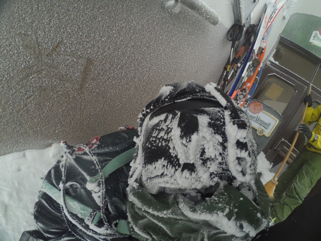 Už je vidět Výrovka :-) Sundavám totálně namrzlej bágl. Setřepávám sníh.