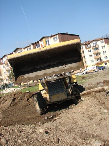 Tak dneska sem strávil ráno a dopoledne v Planý, neb mi bylo sděleno panem starostou Plané, že můžem odpálit výstavbu dirtů. Toho se chopil mr. Drtina, dofčel s Caterpilarem 4×4 turbo v plný palbě (radlice, lžíce, otáčecí sedačka, hydr.zvedací nohy) a šlo se na to.