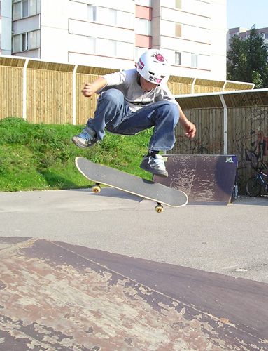 Nejoblíbenější triky sou kickflip, nosebone. Ted sem se naučil fakie BS heelflip přes roh pyramidy a další kraviny. A nejradši a nejvíc jezdím na Somráckým parku a Maredu s Věnckem, Nutelem, a Frajtem, s kterýma teď často jezdíme do různejch parků po ČR…