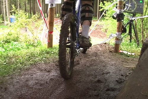 V noci slušnej deštík, ale ráno vypadá dobře. Jedem jezdit. Dneska je tréning do 1h, pak zavíraj trať na hoďku, a začne měřenej tréning. Tak si to nějak najiždíme, Andy jde slušně na držku, vlastně na záda, a není v pohodě, Petr nahoře na první lavici skáče čistotu, ale na dopadu vytrhává šroub z osy, ta zajíždí žvejká se a Petr jde z kola ven, a dává si slušně přes koleno. Kolo je tam žvejlký celý je to křivý jak poslanec, takže dolů jede autem. Dole řežeme osu pilkou, páč nejde vyndat, a po nasazení nový koukáme jak puci, páč zadní stavba je rovná kolo je naprosto ready for ride. Dobrá práce od RB.